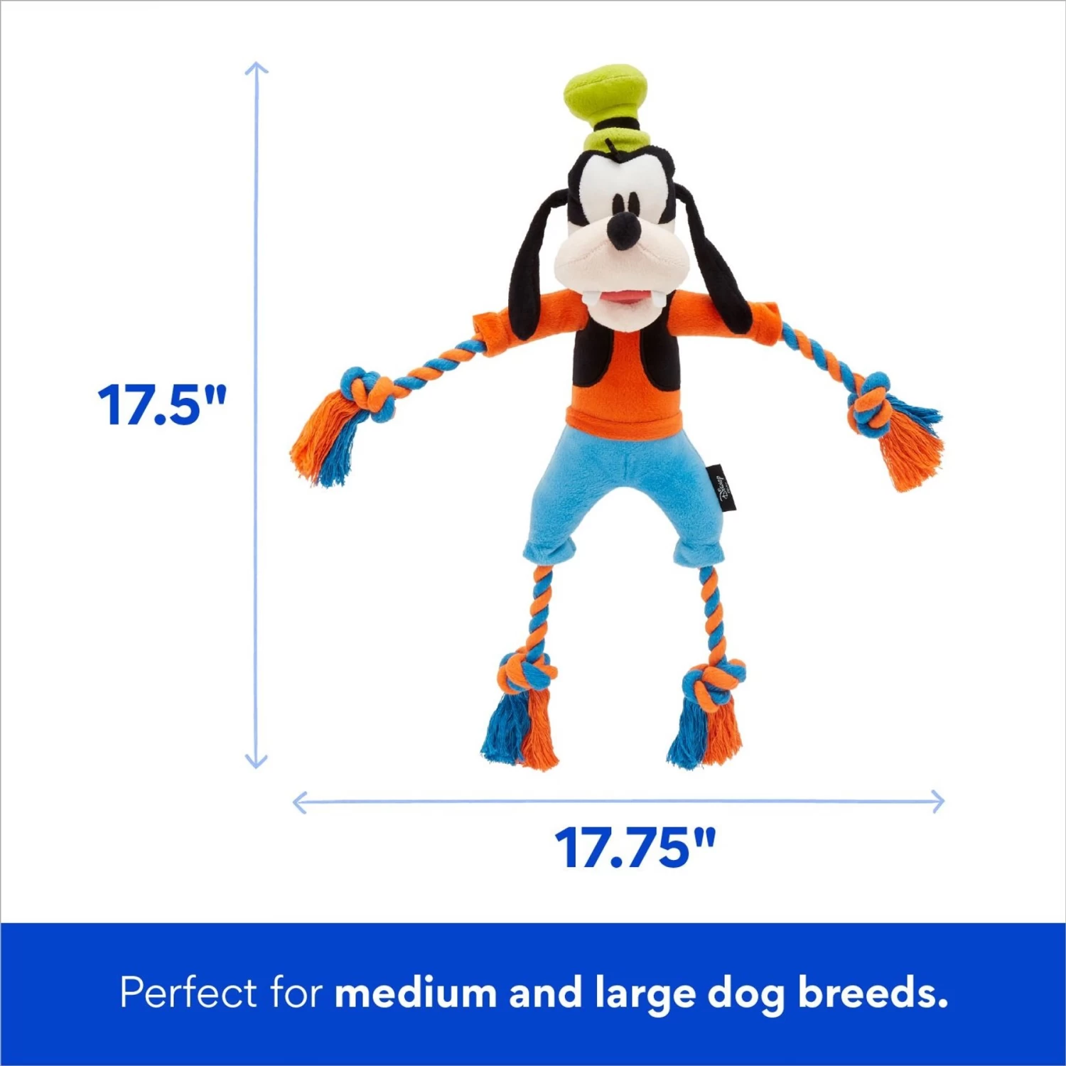 - Features four pup-approved, cotton/poly rope arms and legs attached to Goofy’s body.