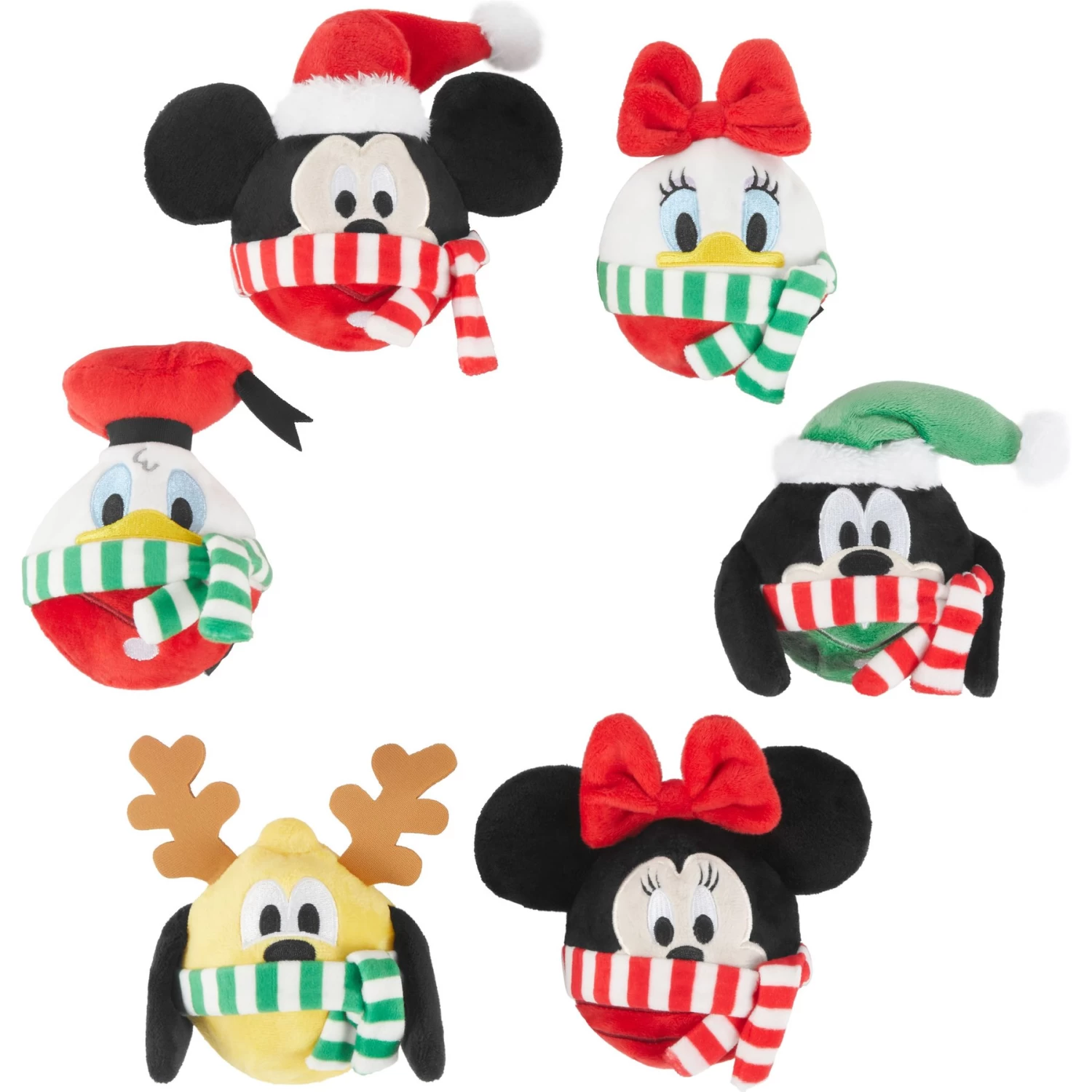 Disney Holiday Mickey Mouse & Friends Plush With Rubber Core Squeaky Dog Toy, 6 Count