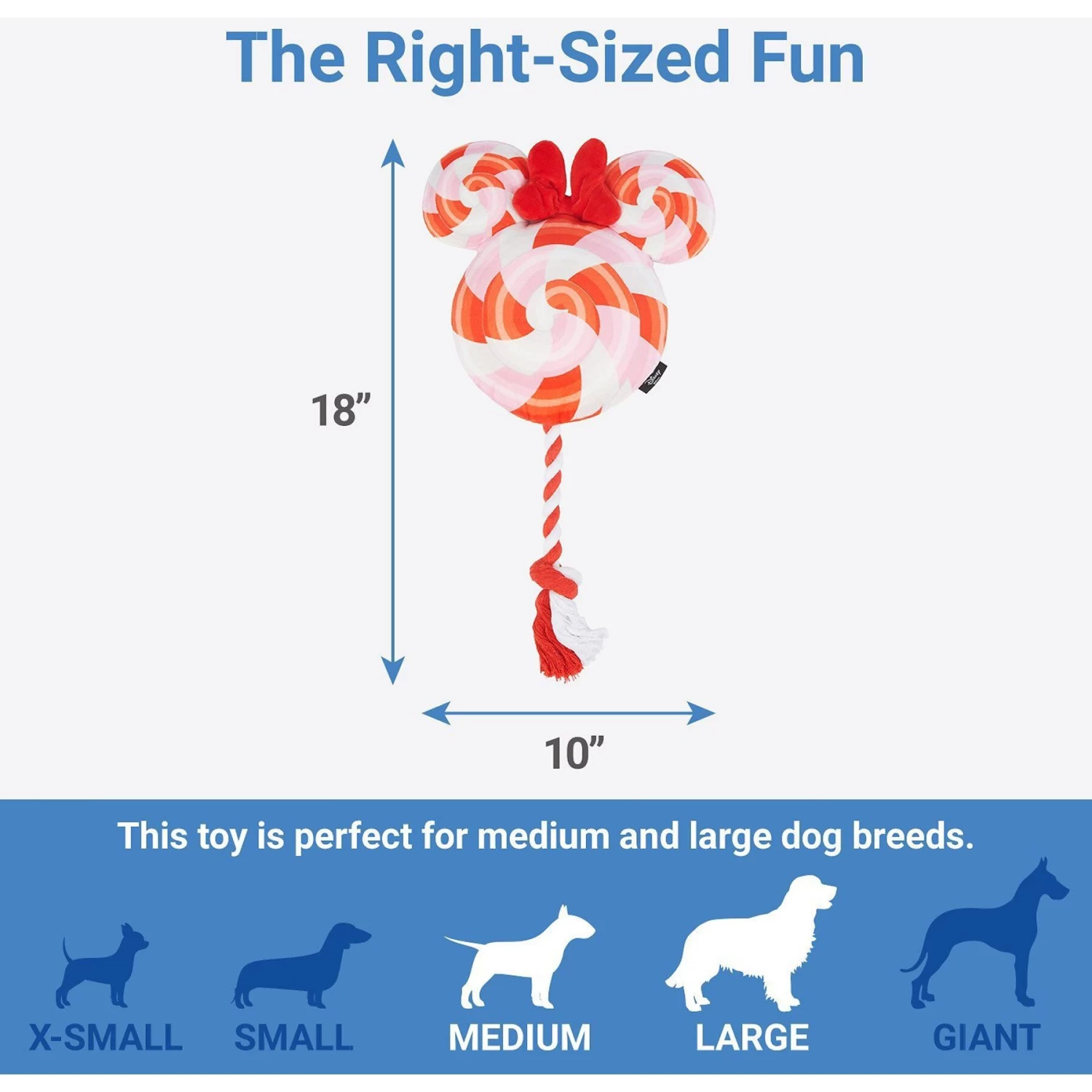 Disney Minnie Mouse Lollipop Plush with Rope Squeaky Dog Toy—Score something sweet for your Disney-loving dog with this Minnie Mouse lolly! This toy, available only at Chewy, combines two pup favorites into one super-fun, superfan-approved plushie.