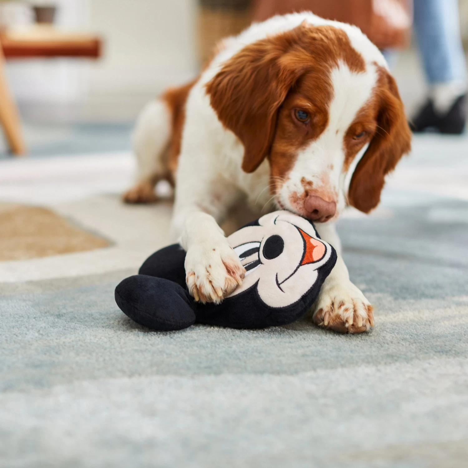- Round Mickey Mouse plush toy is designed for every pup’s whim, whether it’s time to play or nap.