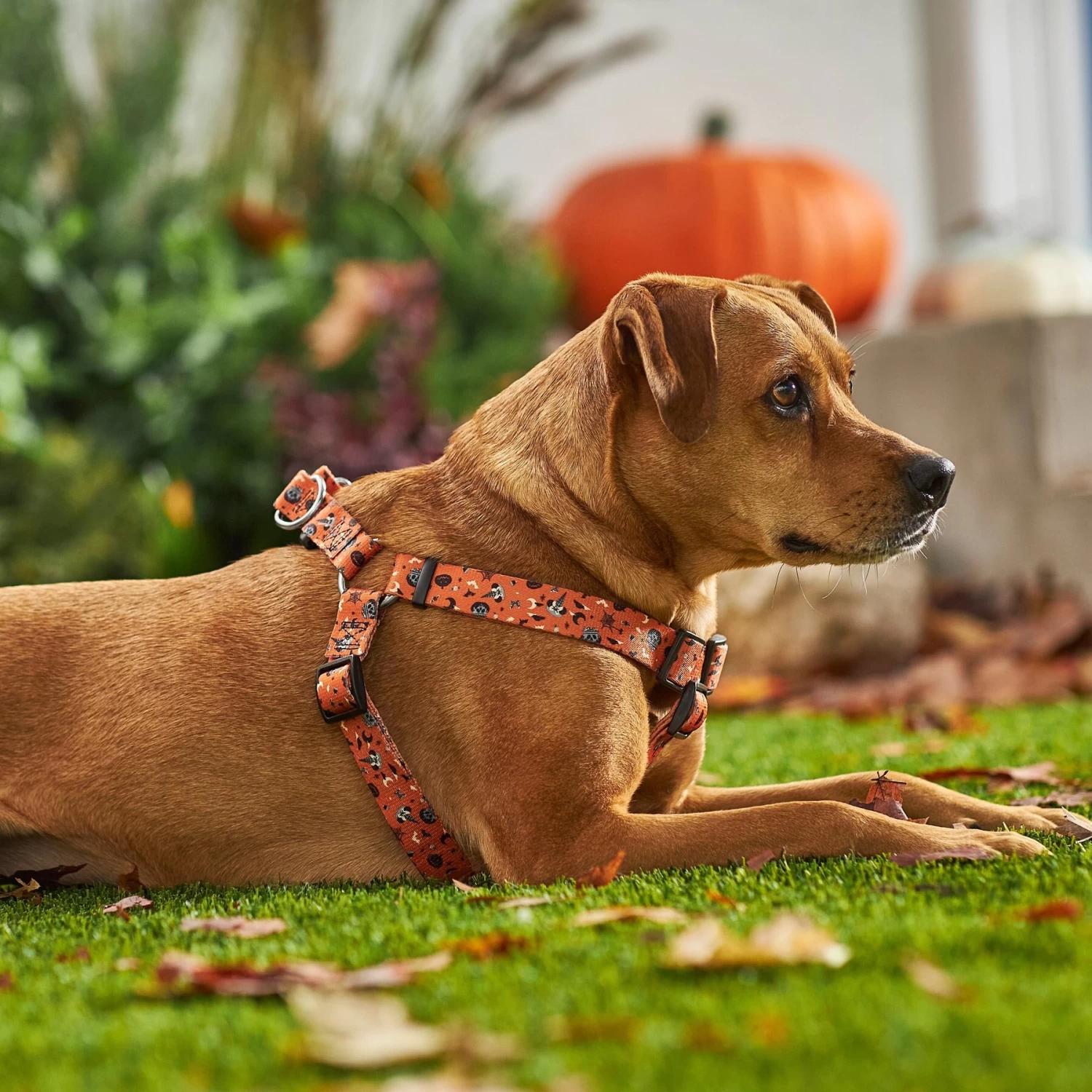 - Spooky and fashionable Minnie Mouse Halloween pattern adds a touch of Disney style to this harness.
