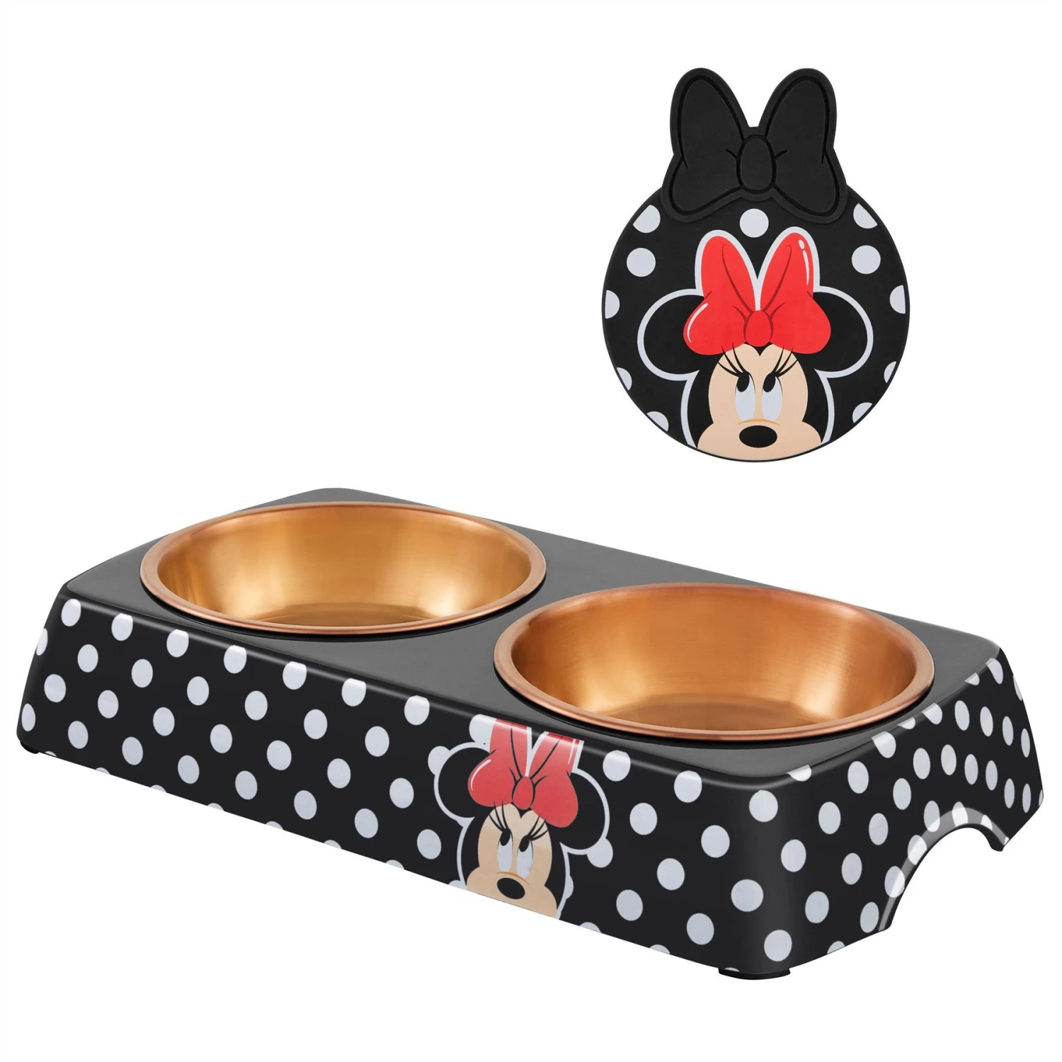 Disney Minnie Mouse Peek-A-Boo Silicone Dog & Cat Can Cover & Disney Minnie Mouse Peek-A-Boo Melamine Stainless Steel Double Dog & Cat Bowl